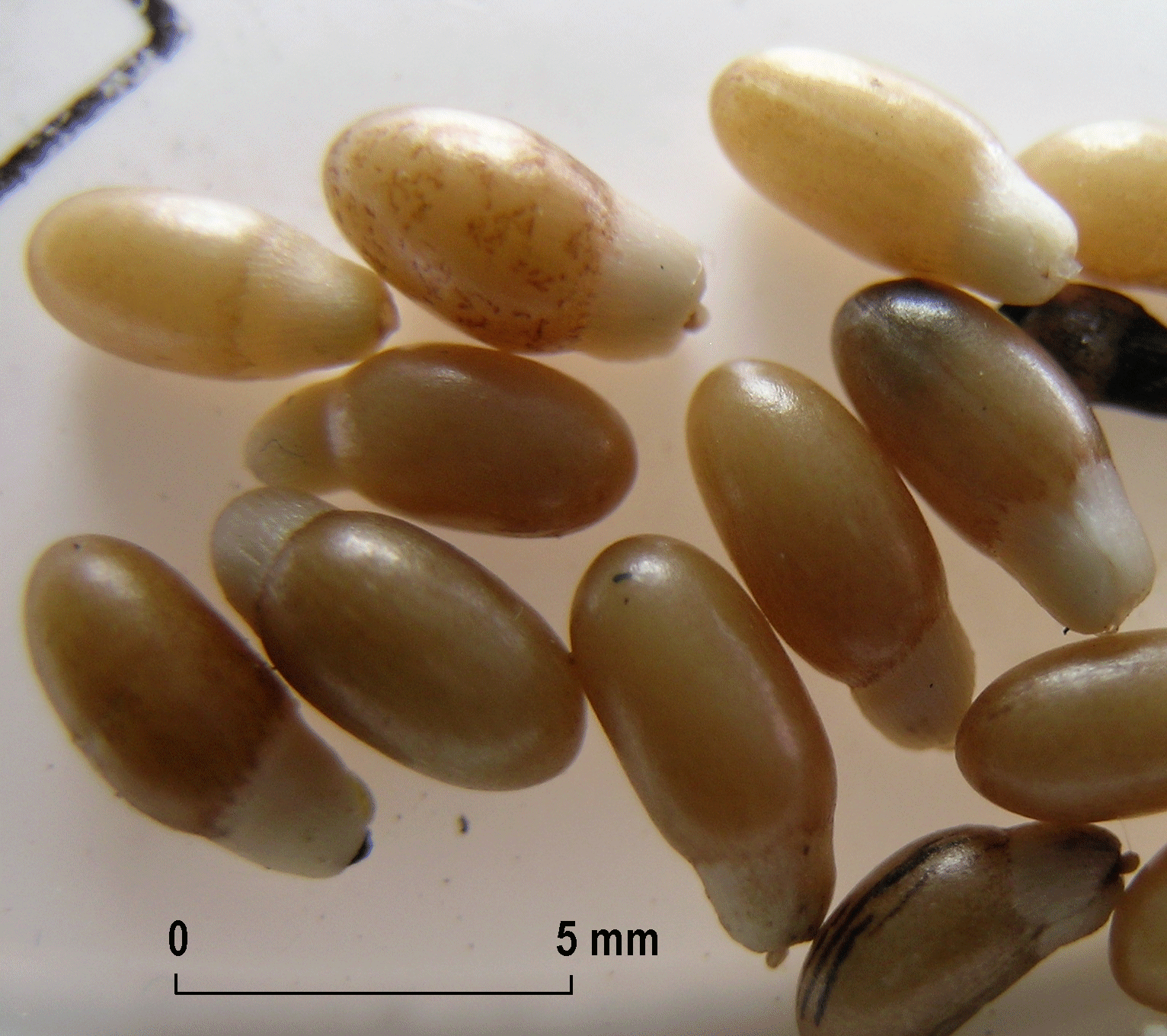 Fig. 1. Seeds of Crested Cow-wheat. They are collected out of their capsules by ants, and taken to their nests where the larvae are fed the oily white hemispherical elaiosomes, and the seeds are then dumped in their frass midden, thus burying them deep in a dry, friable soil ready for germination the following year. © Ken Adams. In M. cristatum the seeds are produced in batches of four per capsule, though not all four necessarily develop fully, and being heavy drop suddenly from the plant. Interestingly, when watching seed drop, it seems obvious that the crested bracts, which are channelled, have evolved as chutes, rather like a child’s playground slide, so that the heavy seeds are shot out sideways rather than dropping like stones to the base of the plant. Moreover the inflorescence is a dense 4-sided spike, so that the seeds are shot out in all four different directions. In contrast, only two seeds are produced per capsule in M. arvense, and the bracts do not appear to intervene in seed drop. Perhaps not surprising in a plant that has probably coevolved to parasitize human grain crops, its best chance of survival being to stay put. By adapting for ant dispersal the genus Melampyrum has been able to produce the largest heaviest seeds in the Scrophulariaceae. M. pratense is a plant of acid woodland clearings and heathland, and forms haustoria with a variety of woody hosts. Cattle were also originally woodland animals, and early domestic cattle were largely fed on tree shreddings. Both cattle and sheep avidly consume the plant and pigs will consume the seeds. When cattle ate M. pratense it was noted that the butter was much richer in colour (due to flavonoids), and Linnaeus stated ‘that when cows are fed in fields where the Meadow Cow-wheat is abundant, the butter yielded by their milk is peculiarly rich and of a brilliant yellow colour’. Hence the origin of the common name ‘cow’-wheat. The origin of the name ‘wheat’ is said to be derived from a belief in the Middle Ages that the seeds were capable of being converted into wheat, quite believable, if one reads the Rev. Gilbert White’s account in the Natural History of Selborne (1867) of the strange beliefs about the origins of birds and insects still around among country folk in his day; and not unreasonable if dormant Cow-wheat seed suddenly gave rise to Cow-wheat among corn crops in cleared woodland. I would think it even more likely that this story has been turned on its head over the years, and that seeing the resemblance of the seeds to wheat, folk believed that some of their seed corn morphed into Melampyrum, no doubt in divine retribution for some misdemeanor! Although the elaeosome tastes sweet, the seeds themselves are bitter, and according to the physician and botanist Rembert Dodonaeus (1550s) ‘the seeds of this herb taken in meate or drinke troubleth the braynes, causing headache and drunkennesse’. Distribution Patterns The Field Cow-wheat and the Crested Cow-wheat are obviously very closely related to each other, their seeds are virtually identical, they are both summer annuals, their flowers and bracts are very similar, and they can both parasitize grasses, although M. cristatum is also able to form haustoria with shrubby species. To form an effective coupling to a host, M. arvense seeds need to germinate at about the same time as the host, (attempts experimentally to get them to couple to mature hosts generally resulting in failure), this may not however, apply to the shrubby species that M. cristatum prefers. Both however, need to be able to germinate, grow, flower and set seed before the autumn. Whereas M. arvense appears to have evolved largely as a weed of corn fields, and in Britain is generally regarded as most likely to have been been introduced as an imported grain contaminant, M. cristatum would appear to be a native species which originally inhabited scrubby grassland on freely draining calcareous clay soils. Its past and present recorded distribution is however difficultto decifer. Because it can parasitize grasses as well as shrubs, as in the case of M. arvense, some of the many old records scattered across southern England could have resulted from short-lived introductions as a crop seed contaminant. This would account for the otherwise extraordinarily concentrated distribution pattern which the bulk of the past and present records reveal. These as the maps Figs. 2 & 3 show are concentrated in a band that runs diagonally across north Hertfordshire, through north-west Essex across to mid-Suffolk and then north to Norfolk, with a major outlier extending north westwards from Cambridgeshire towards Bedfordshire and Leicestershire, and north to Lincolnshire. The Sulphur Clover has a somewhat similar distribution pattern (Adams 2007), but that has a wider band of distribution more or less following the Hanslope association soils of the more calcareous facies of the glacial till known as the Chalky Boulder Clay. The Crested Cow-wheat is also largely confined to the chalky boulder clay (CBC), but its distribution also coincides with the crest of the East Anglian Heights, its occurrences being just over the crest on the dip slope of the hills, the diagonal running perpendicular to the valleys carved into the chalky boulder clay since the last ice age. This suggest that the bulk of the UK population is confined to the steeper and most freely draining segments of the CBC on slopes that dip gently to the SE and are therefore largely protected from cold winds from the north, and being inclined to the sun will receive a greater level of insolation. In contrast the Sulphur Clover appears to prefer the less freely draining plateau slopes further south. This pattern does not apply to all the Crested Cow-wheat colonies however. Quite a concentration of populations in former times occurred to the north west of the ridge, although again probably always on chalky till deposits. A possibility here is that in mild