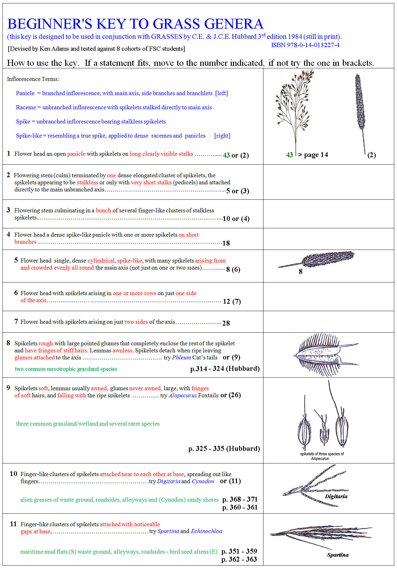 To use in conjunction with Hubbard's Grasses. 3rd edition.