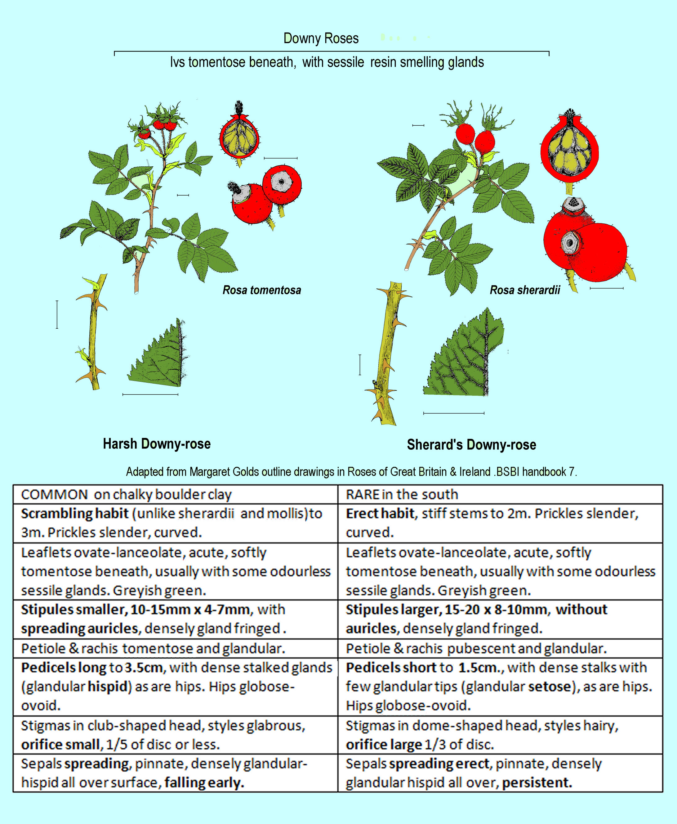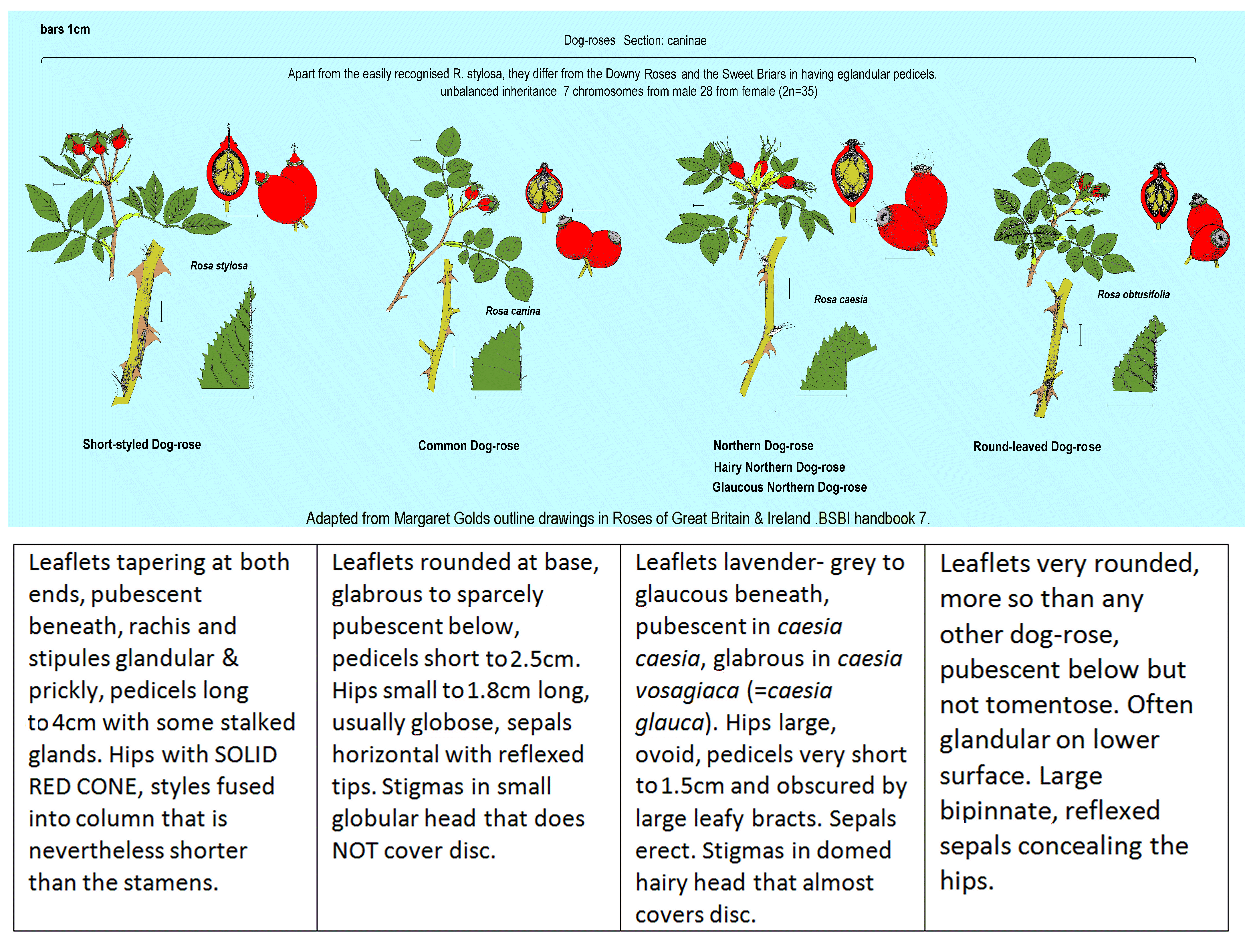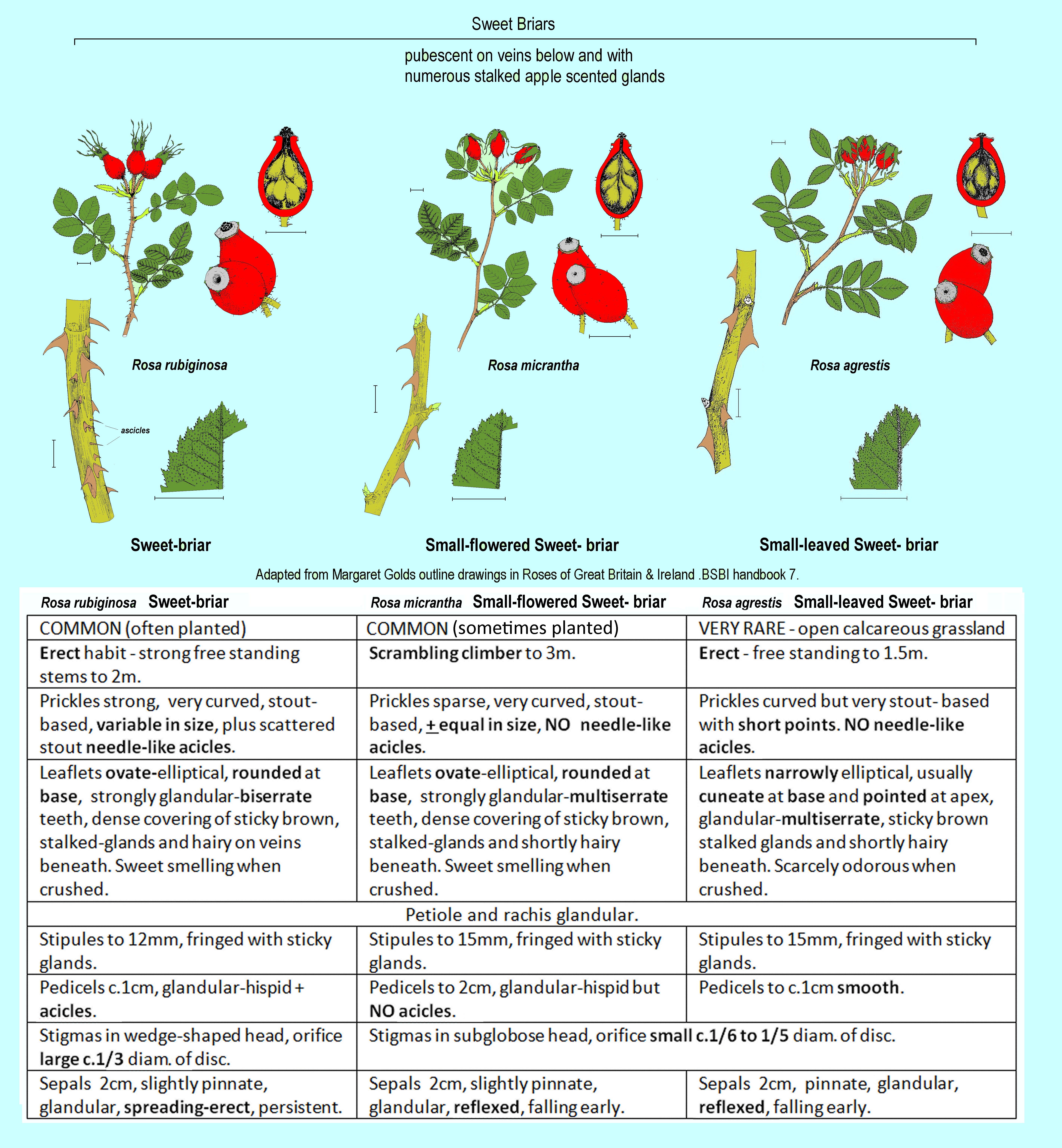 Roses key. Synopses of the three groups to be found in SE England based on the BSBI Handbook No:7 Roses of Gt. Britain & Ireland. Rev. Graham and Primaesi