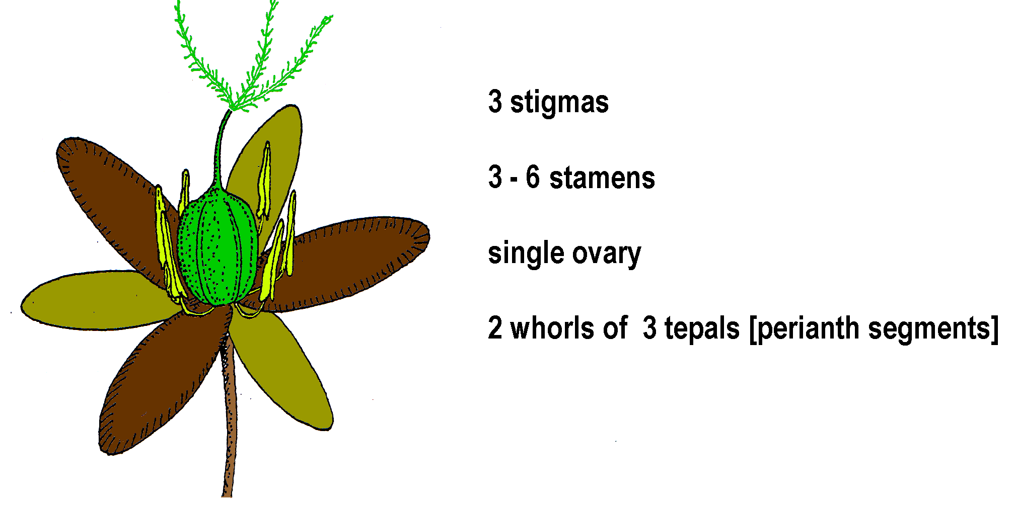 light brown tepals, inner and mucronate, inflorescence